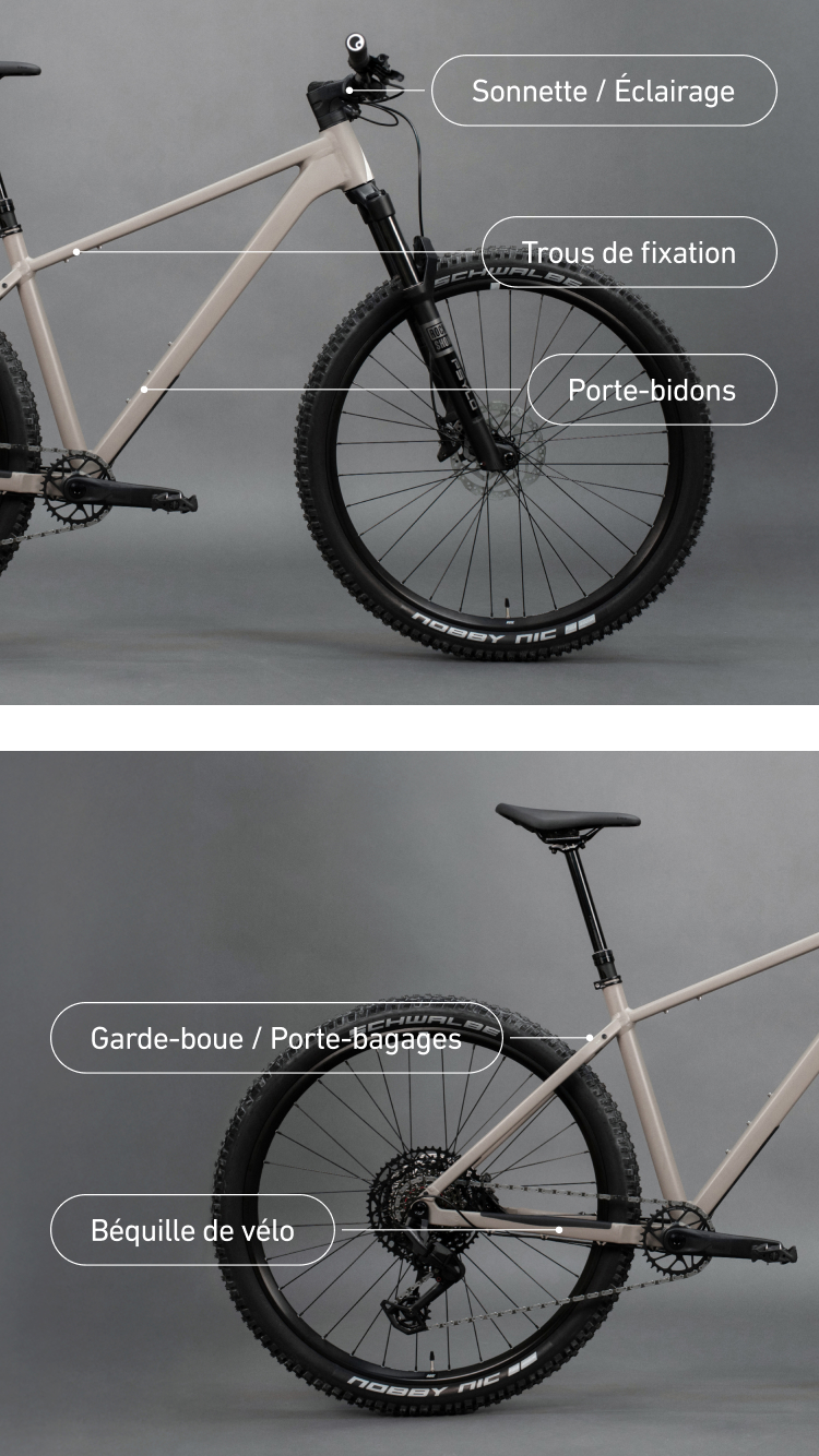 Personnalisez votre PDQ AL à votre goût. Des porte-bidons et une bande porte-outils pour le sentier, des garde-boue et porte-bagages pour le quotidien.