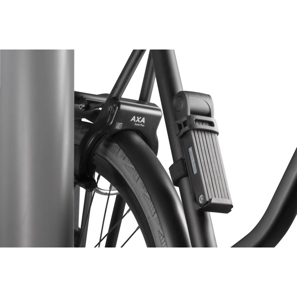 L’AXA Fold Lite 100 est idéal pour les vélos et les cadres qui ne sont pas courants. En effet, les dimensions compactes et le support universel sont très avantageux pour bien mettre en place l’antivol articulé AXA sur le vélo. Alors, le Fold Lite s’intègre à portée de main même aux cadres d’une géométrie défavorable pour être facile d’utilisation. Soit vissé aux trous pour un porte-bidon soit monté avec une sangle où que vous vouliez. L’élastique de retenue, qui sert à sécuriser l’antivol pliable dans le support, se détache aussitôt et s’accroche rapidement à nouveau pour l’utilisation journalière.