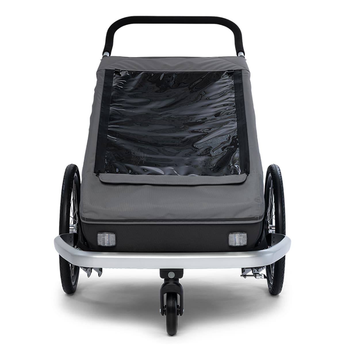 Pour que les petits passagers se sentent vraiment à l'aise dans la Kid Keeke 2, Croozer a intégré des sièges ergonomiques et souples. En plus, la suspension Croozer AirPad offre plus de confort même sur les chemins cahoteux. Grâce au système de harnais à 5 points Easy Pull, qui est rembourré et facile à utiliser, vos petits passagers sont toujours parfaitement sécurisés. Grâce au capot 2 en 1, qui est constitué d’une housse de pluie transparente et d'une moustiquaire, vous n’avez pas besoin de vous faire de soucis du mauvais temps et des hôtes indésirables. Et même quand il fait beau, vos passagers s’emmènent tranquillement dans la Kid Keeke 2 car le capot de pluie ainsi que les fenêtres sur les côtés possèdent une protection UV 80.