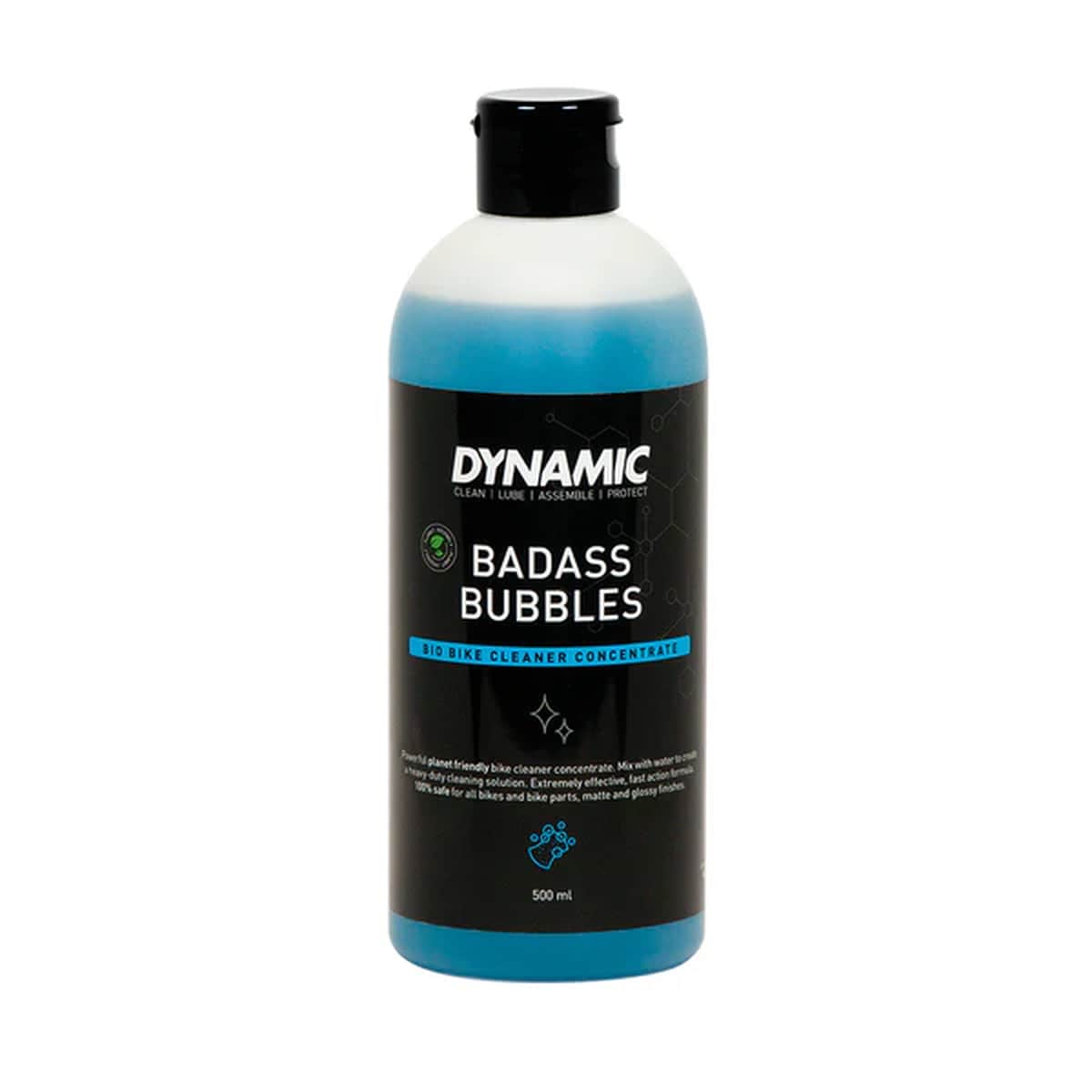 Le Dynamic Badass Bubbles est un concentré fort et efficace pour nettoyer le vélo. Mélangez-le à l'eau pour obtenir un produit de nettoyage très efficace.    Le nettoyant produit une mousse forte qui adhère au cadre et aux composants, qui passe en profondeur dans les saletés et la graisse et qui assure un nettoyage nettement efficace malgré un effort moindre.