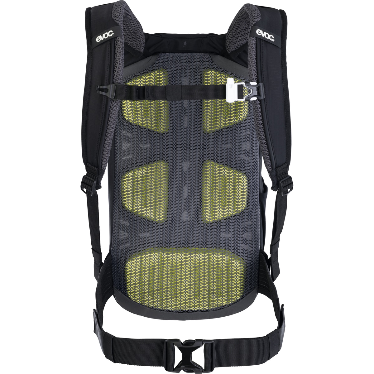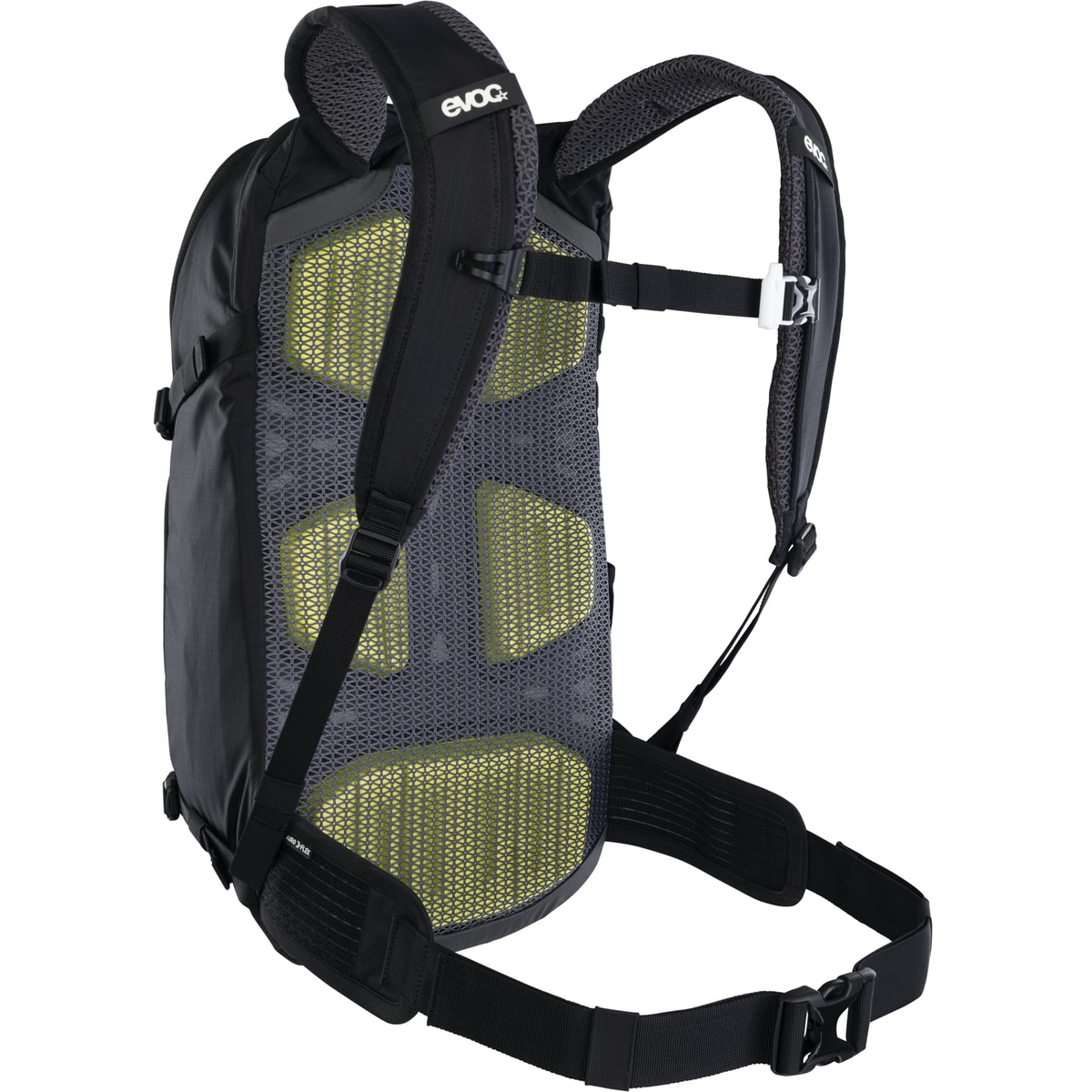 Les bretelles d’épaule et la ventrière sont placées astucieusement de manière à pouvoir déplacer la charge vers le centre de gravité du corps et à minimiser les points de contact avec les épaules ainsi que le dos. L’aération dorsale a été optimisée tant par des canaux d’aération que par des rembourrages EVA et par le tissu en mesh.