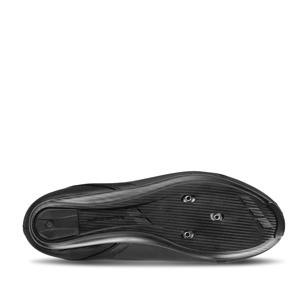 Cette semelle est faite du nylon enrichi en carbone pour garantir la rigidité idéale. La hauteur moindre garantit un pédalage rond sans dispersion d’énergie. La forme de la semelle autour de la voûte plantaire accroît la stabilité du pied. Cinq orifices d’aération ventilent la chaussure. Il y a dans la semelle un complément adhérent à la pointe et un remplaçable au talon. La semelle possède également une échelle d’orientation pour bien positionner les cales. Le logement pour des crampons optionnels se trouve d’env. 9 mm plus haut que celui de la semelle antérieure. Index de rigidité de la semelle: 8