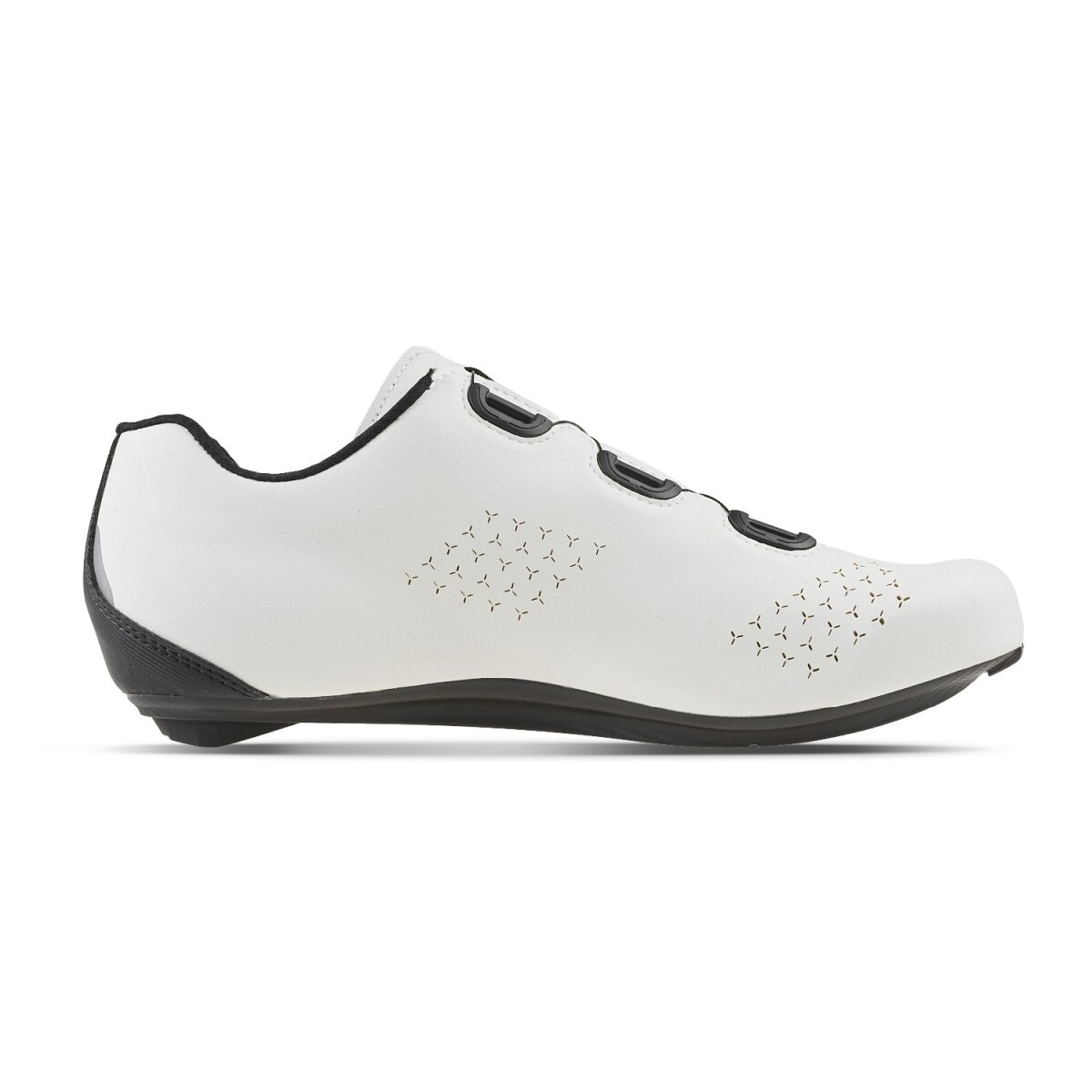 Cette semelle est faite du nylon enrichi en carbone pour effectuer une rigidité optimale. La hauteur moindre provoque un pédalage rond sans dispersion d’énergie. La forme de la semelle autour de la voûte plantaire accroît la stabilité du pied. Cinq orifices d’aération ventilent la chaussure. Il y a dans la semelle un complément adhérent à la pointe et un remplaçable au talon. La semelle possède également une échelle d’orientation pour bien positionner les cales. Indice de rigidité de la semelle: 8.