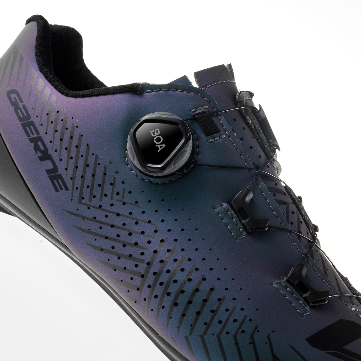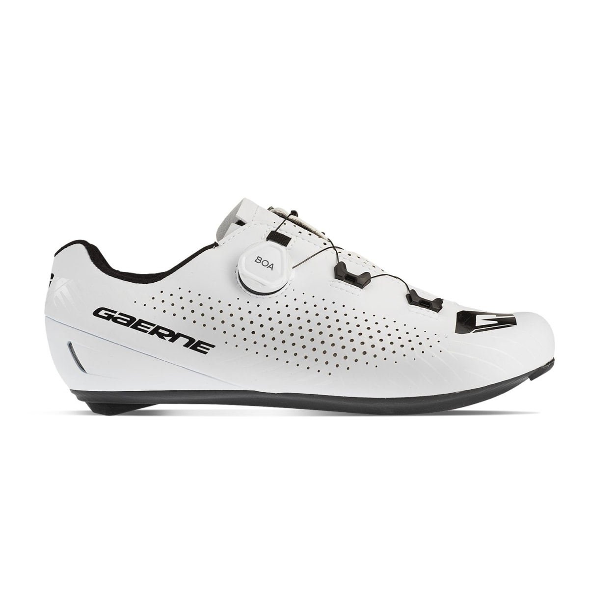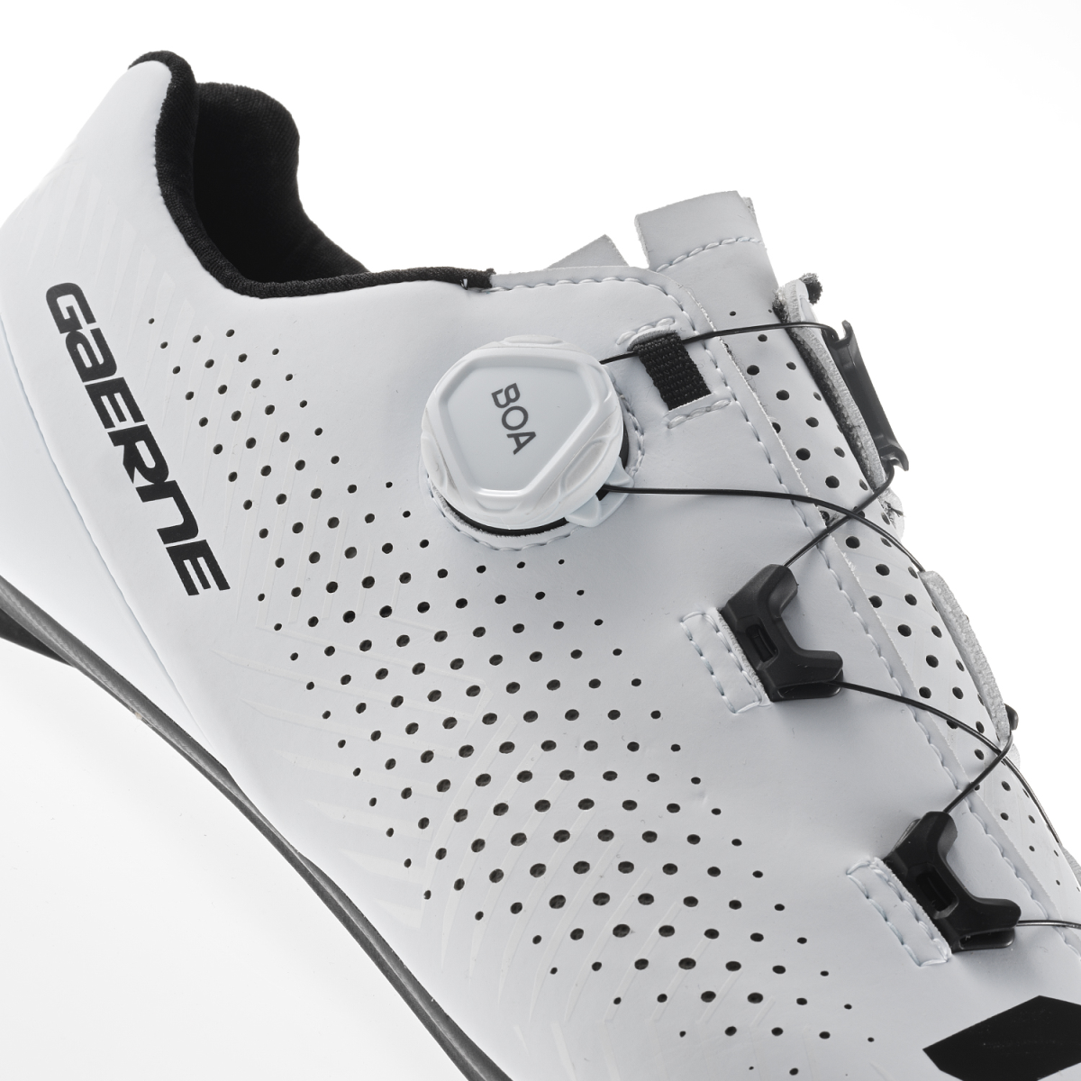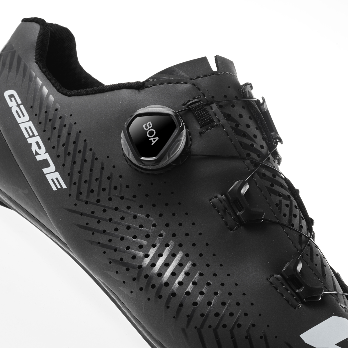 Les chaussures pour vélo de course G.TUONO de GAERNE satisfont par une transmission de force idéale et une respirabilité supérieure. Le matériau de dessus perforé plus les canaux d'air à l'intérieur de la semelle EPS CARBON POWER SOLE 8.0 prennent en charge une excellente aération en vos séances d'entraînement. Grâce à la coque innovante INTEGRATED ANTI SLIP HEEL CUP au talon et à la technologie TSS, vous profitez d’un contrôle et d’une stabilité optimaux. La molette de fermeture BOA L-6 Dial C permet que cette chaussure de route épouse bien votre pied et que vous pouvez l’enfiler et enlever avec facilité.