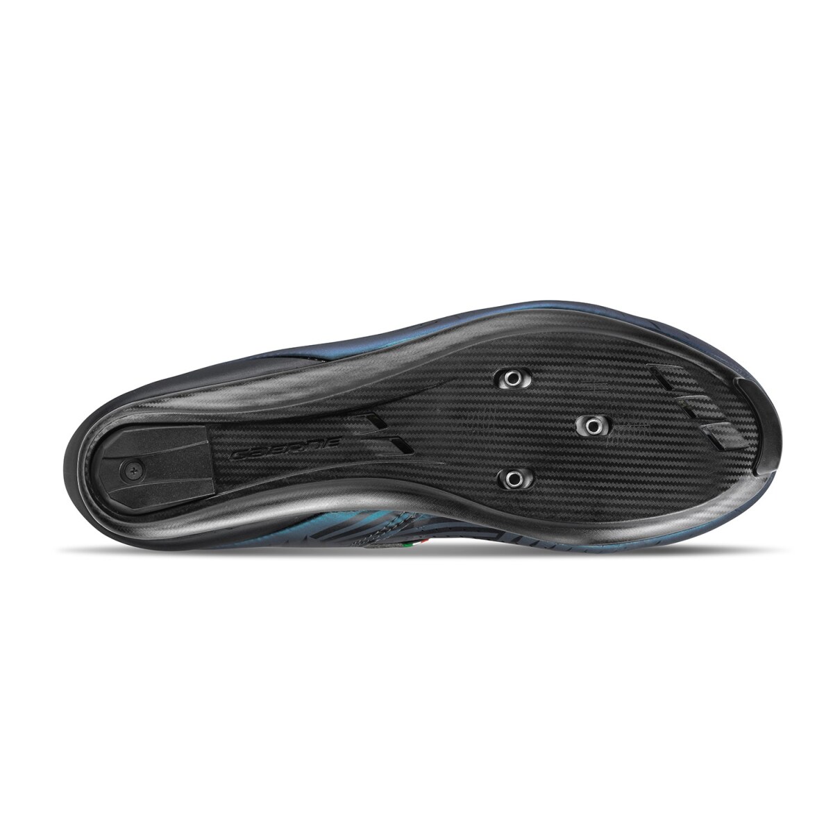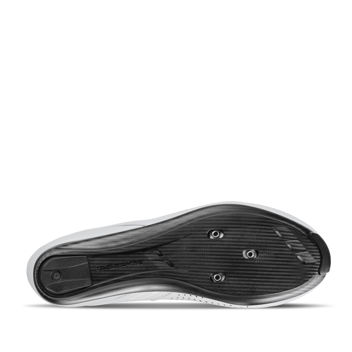 Cette semelle est faite du nylon enrichi en carbone pour effectuer une rigidité optimale. La hauteur moindre provoque un pédalage rond sans dispersion d’énergie. La forme de la semelle autour de la voûte plantaire accroît la stabilité du pied. Cinq orifices d’aération ventilent la chaussure. Il y a dans la semelle un complément adhérent à la pointe et un remplaçable au talon. La semelle possède également une échelle d’orientation pour bien positionner les cales. Le logement pour des crampons optionnels se trouve d’env. 9 mm plus haut que celui de la semelle antérieure. Indice de rigidité de la semelle: 8