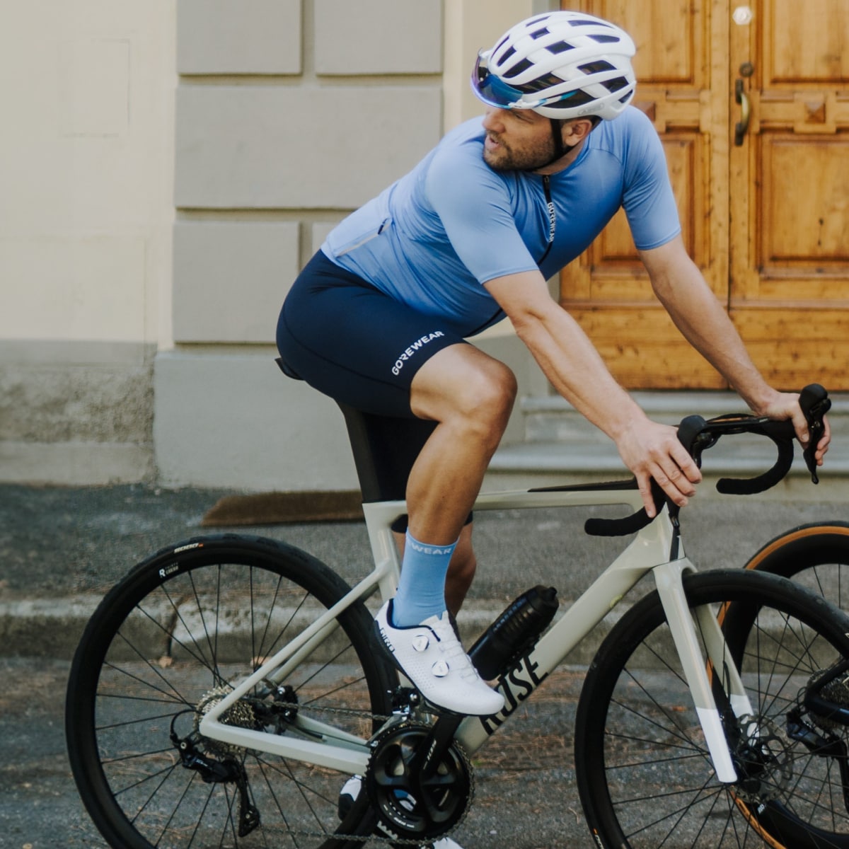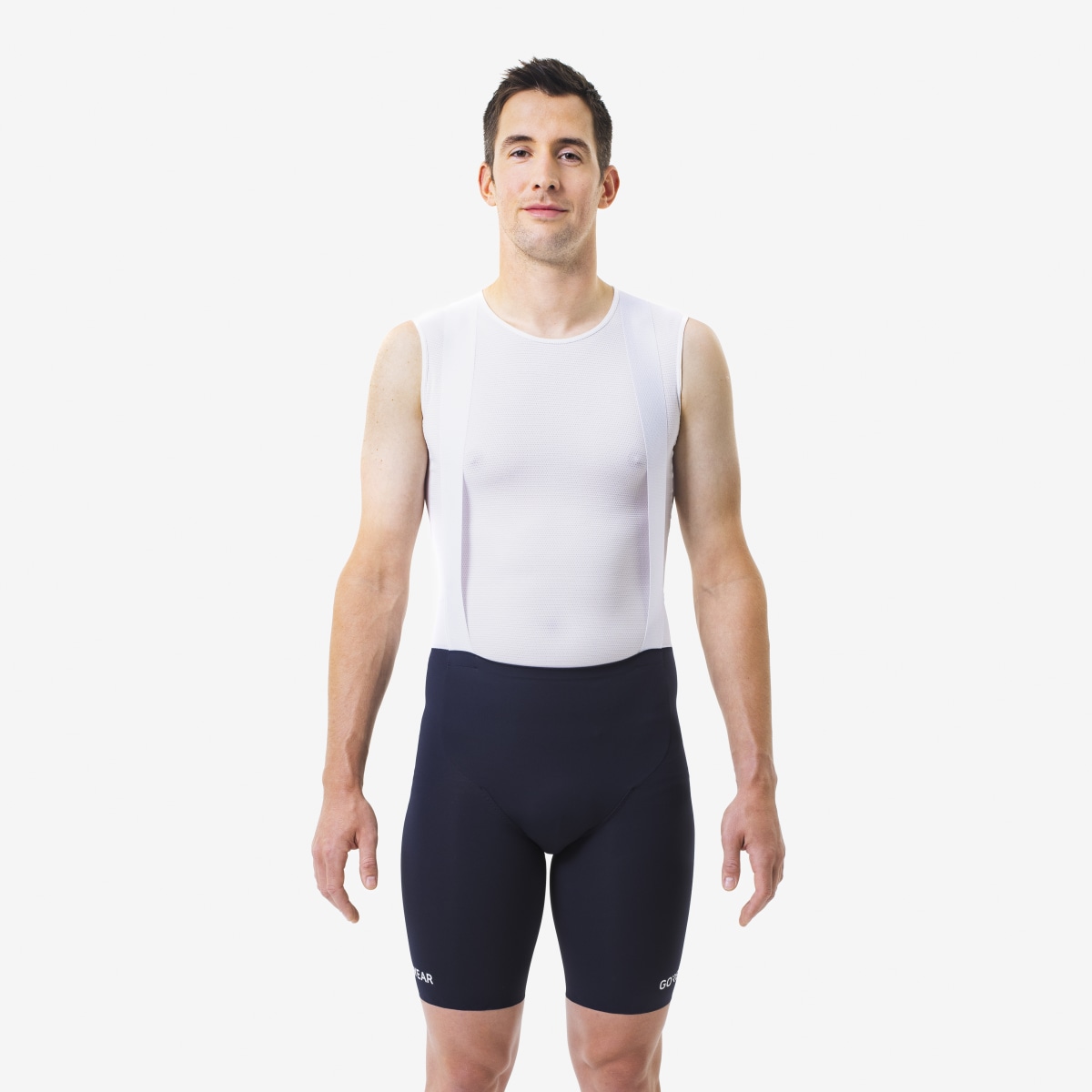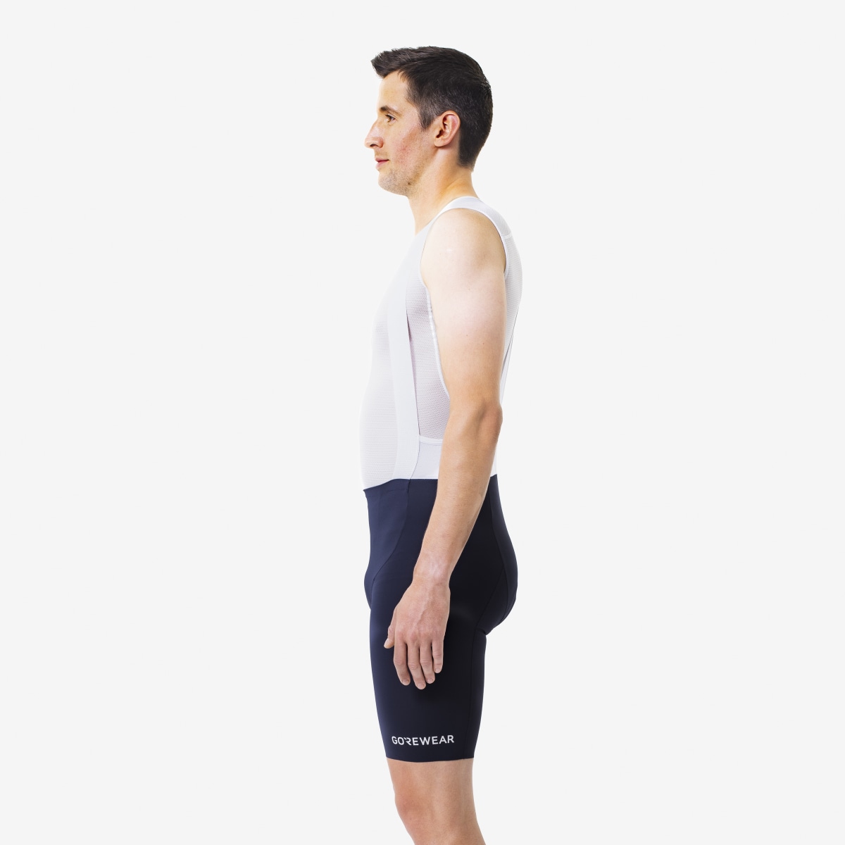 Ce concept design que GOREWEAR appelle CENTRAL TORSO ARCHITECTURE, met le chamois au milieu et le cuissard à bretelles tout autour. Cette conception met le foyer sur la peau de chamois et sur les rapports en lesquels elle entre avec le corps et le cuissard. Elle garde le chamois sur place et, sans gêner, établit quand même un contact solide entre le cycliste et le vélo.