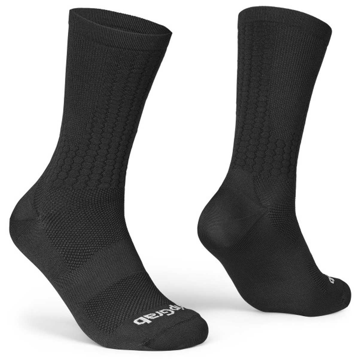 La GripGrab FASTSTREAM AERO SOCK est votre équipement idéal quand chaque seconde compte. Ces chaussettes de performance sont tricotées à l’intégralité et elles séduisent par leurs fonctions aérodynamiques dans la tige et leur fil COOLMAX ECO recyclé pour un confort et une respirabilité exceptionnels au niveau du pied. Aussi, les différentes technologies de tricotage améliorent l'aérodynamisme des chaussettes de cyclisme. Ces technologies créent des motifs hexagonaux minuscules qui, eux, ont l'effet de turbulateurs minuscules étant bénéfiques pour l'aérodynamique. De surcroît, il y a des zones de forte compression dans la tige pour avoir une forme plus lisse à la jambe. Vu le combo bien pensé de l’ajustement et du motif, ces chaussettes font une contribution idéale dans la lutte contre la résistance à l'air.