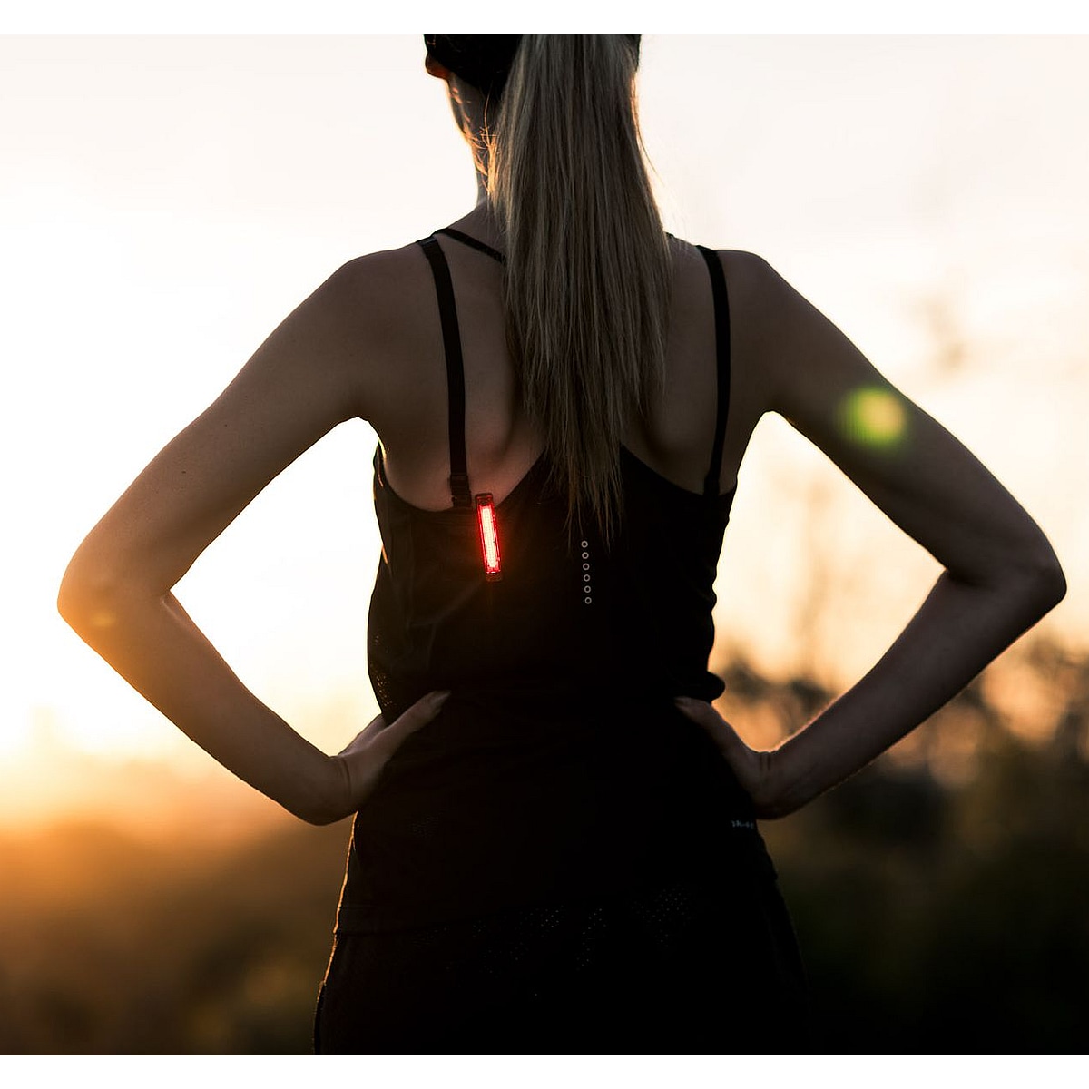 Le feu arrière à batterie Knog Plus est également doté de nombreuses fonctionnalités utiles. Avec la fixation à bande velcro qui est livrée avec, vous pouvez le monter à peu près toute tige de selle usuelle. Un détail intelligent, c’est l’aimant intégré avec lequel vous clipsez la lampe arrière de vélo dans le support. Le Plus est formé de telle sorte que l’on peut aussi attacher aux vêtements ou au sac à dos. Cela permet de porter l’éclairage arrière p. ex. en course ou randonnée à pied ou encore d’autres sports de plein air. On recharge le Knog Plus très facilement par le biais du port USB intégré: Vous pouvez le brancher simplement dans un chargeur USB compatible ou le port USB de votre ordinateur portable ou PC.