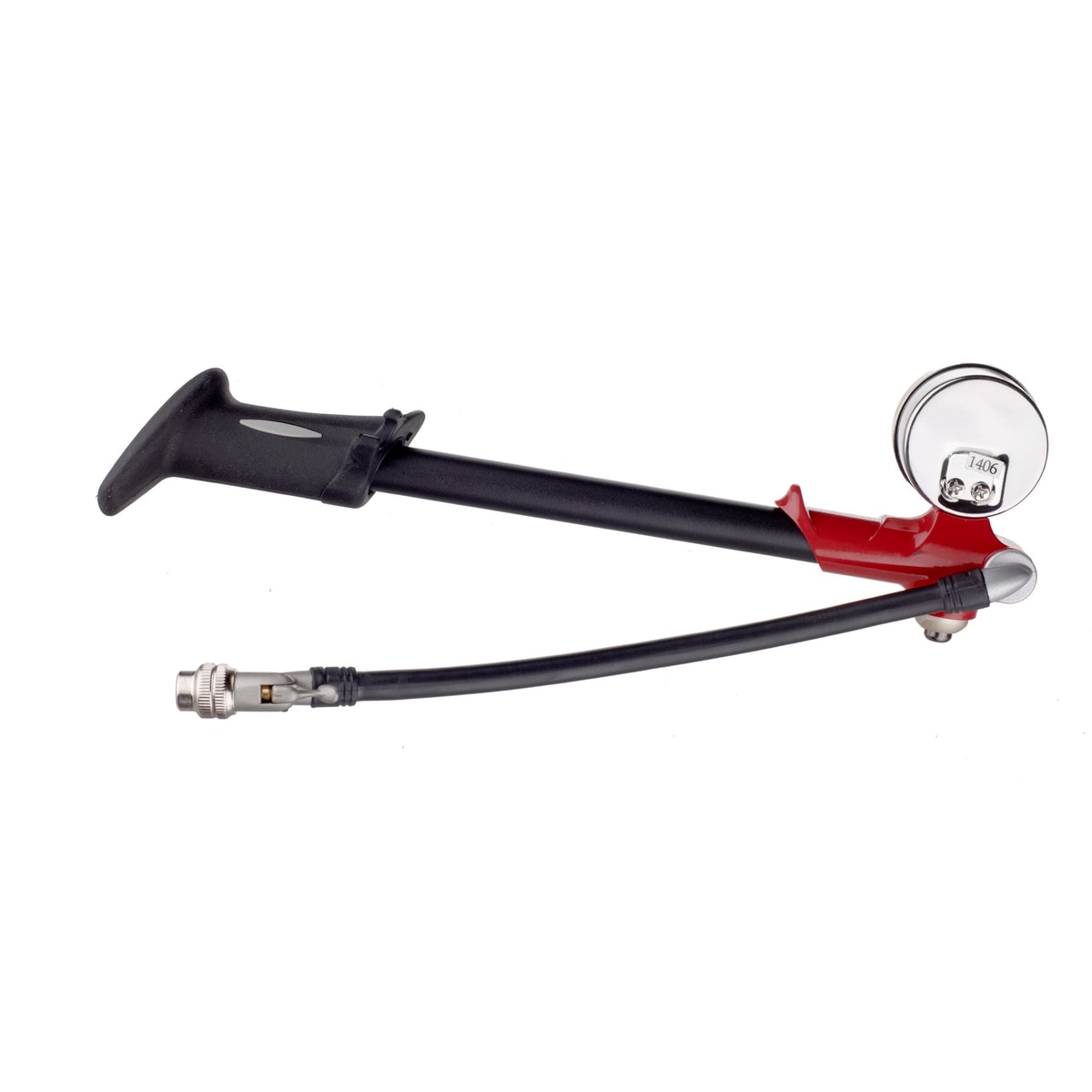 La pompe Magura pour fourches suspendues et amortisseurs peut regonfler ces composants jusqu'à 20 bars. Une valve spéciale garantit que de l'air ne peut pas sortir en dévissant la pompe des éléments de ressort.