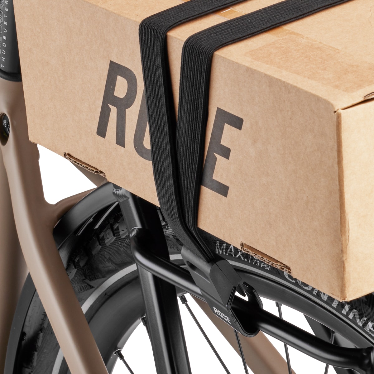 Regroupé avec une forte traction ou arrimé en différents rangs, le duo de sangles de serrage embrasse tout ce que vous souhaitiez emporter en toute sécurité sur votre vélo. Le sac de couchage, le karrimat ou les vêtements de pluie. Par son élasticité élevée et sa force de serrage nette, le tendeur pour bagages de ROSE assure aussi à long terme un transport sûr sur le vélo.