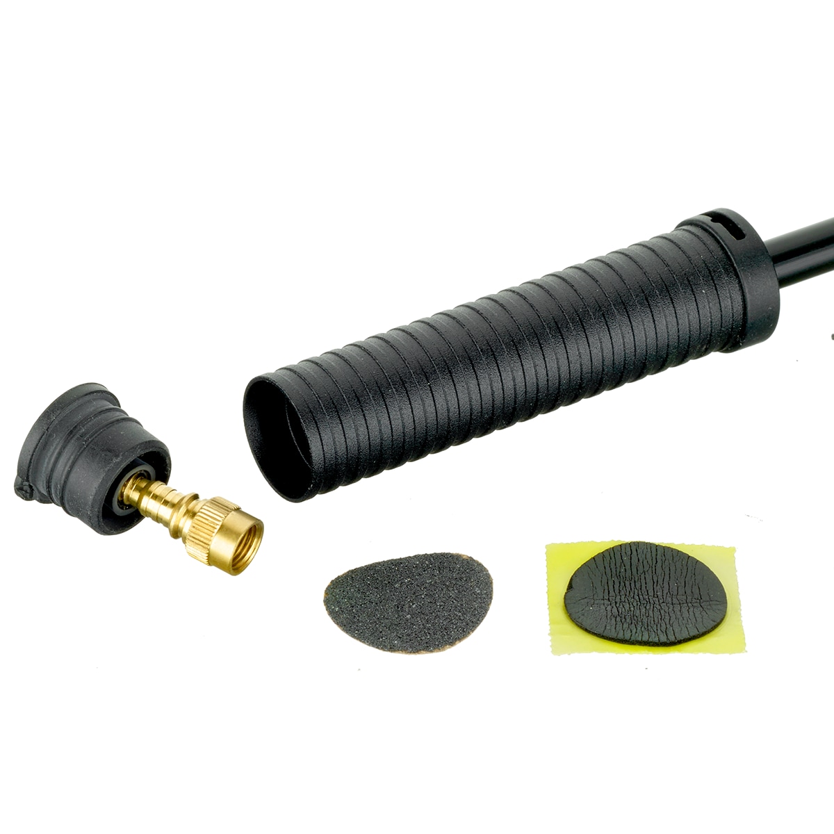 • avec adaptateur de valve et jeu rustines dans la poignée de la pompe