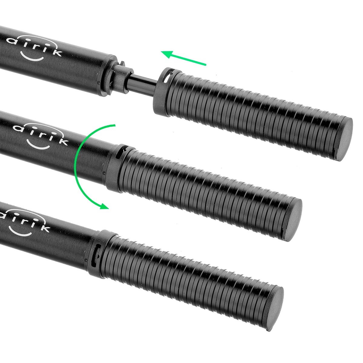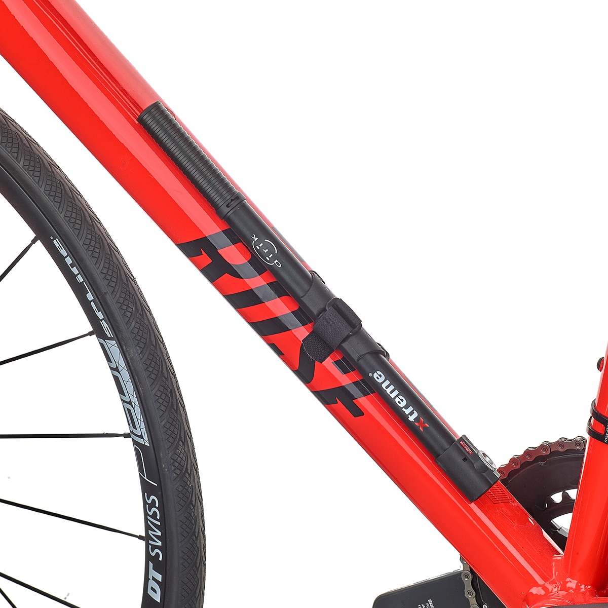 Un compresseur puissant avec un tube de pression et un piston en alliage d'aluminium haut de gamme. Vu le diamètre réduit et la tête de pompe de précision, l'airik atteint un extrêmement bon gonflage jusqu'à 11 bar/160 psi et est à ce titre idéale pour le gonflage des pneus haute pression. Un détail particulièrement réussi est le petit compartiment intégré dans la poignée dans lequel on range le kit anticrevaison et l’adaptateur de valve. Le support est monté au cadre, dans les alésages destinés à un porte-bidon et un mécanisme de blocage empêche la pompe de se déployer de manière intempestive.