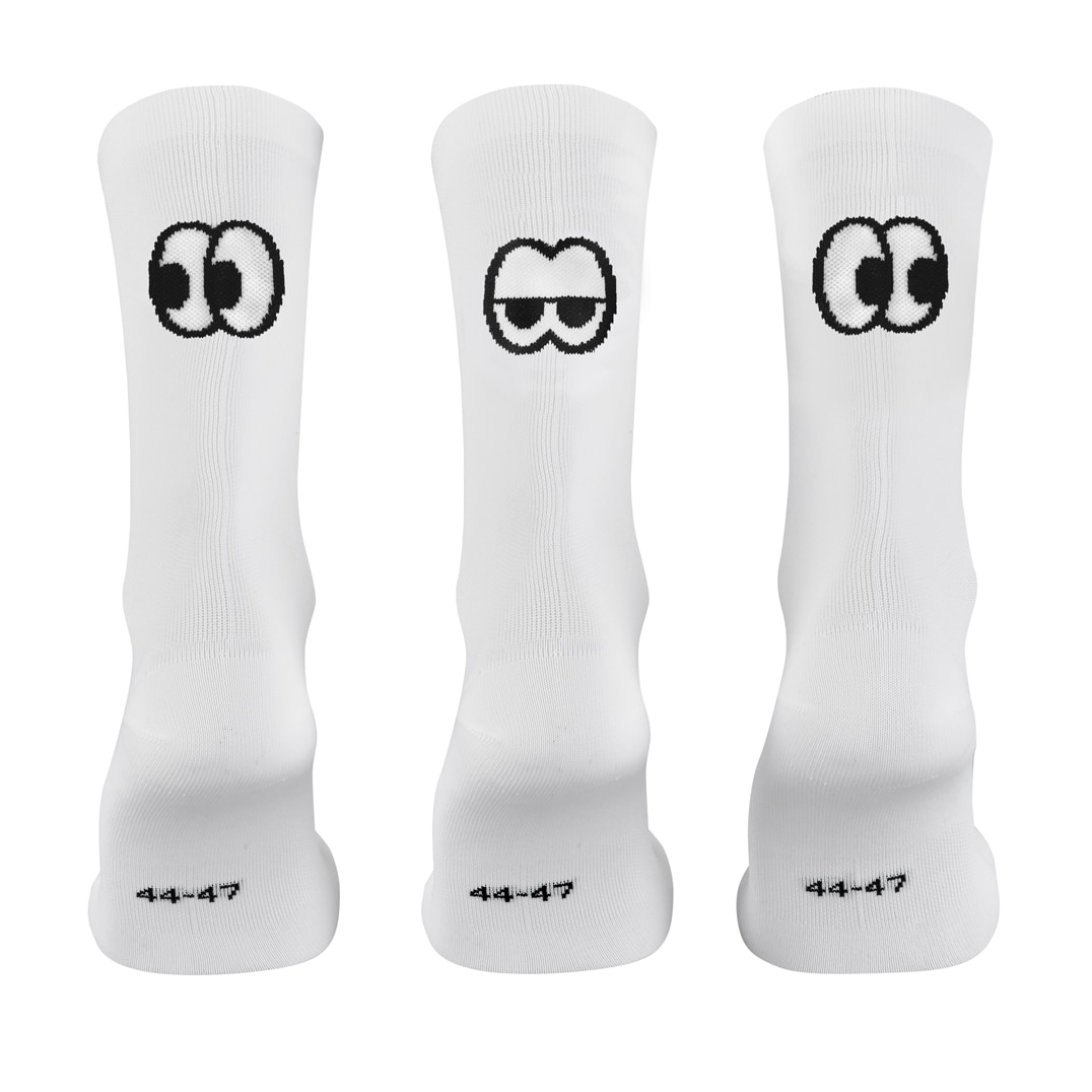 Si c'est à nouveau le cas que vous ne pouvez pas quitter le vélo des yeux, les ROSE Eyes Socks n'oublient pas de regarder. C'est un tel regard qu'aucun de vos adversaires n'osera vous dépasser en course. Grâce au fil respirant et anti-odeur Q SKIN, avec ces chaussettes, ça fait plus de plaisir de passer de longues journées à vélo. Il y a des renforts au niveau des talons et des orteils qui vous donnent également un surplus de durabilité. Le lot de 3 vous réserve directement les trois modèles. Route, gravel ou trail, peu importe car ce regard est irrésistible tout simplement!