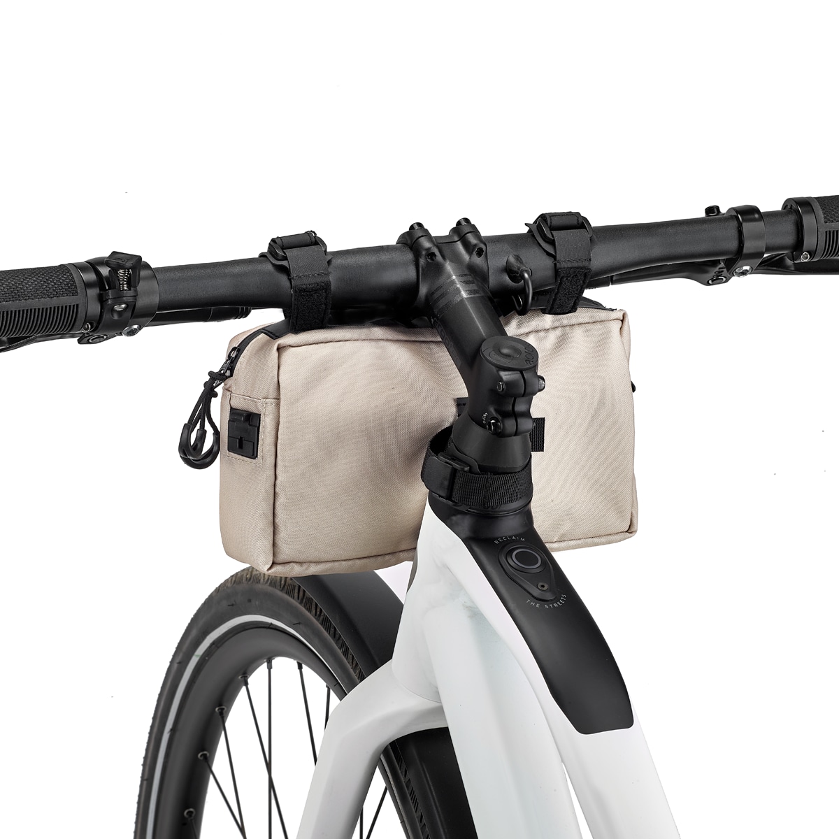 La sacoche de guidon se fixe solidement au cintre et autour du tube de direction à l'aide des bandes velcro et de la sangle à boucle fournies. Pour des conseils pour l’installation du sac, merci de regarder la vidéo.