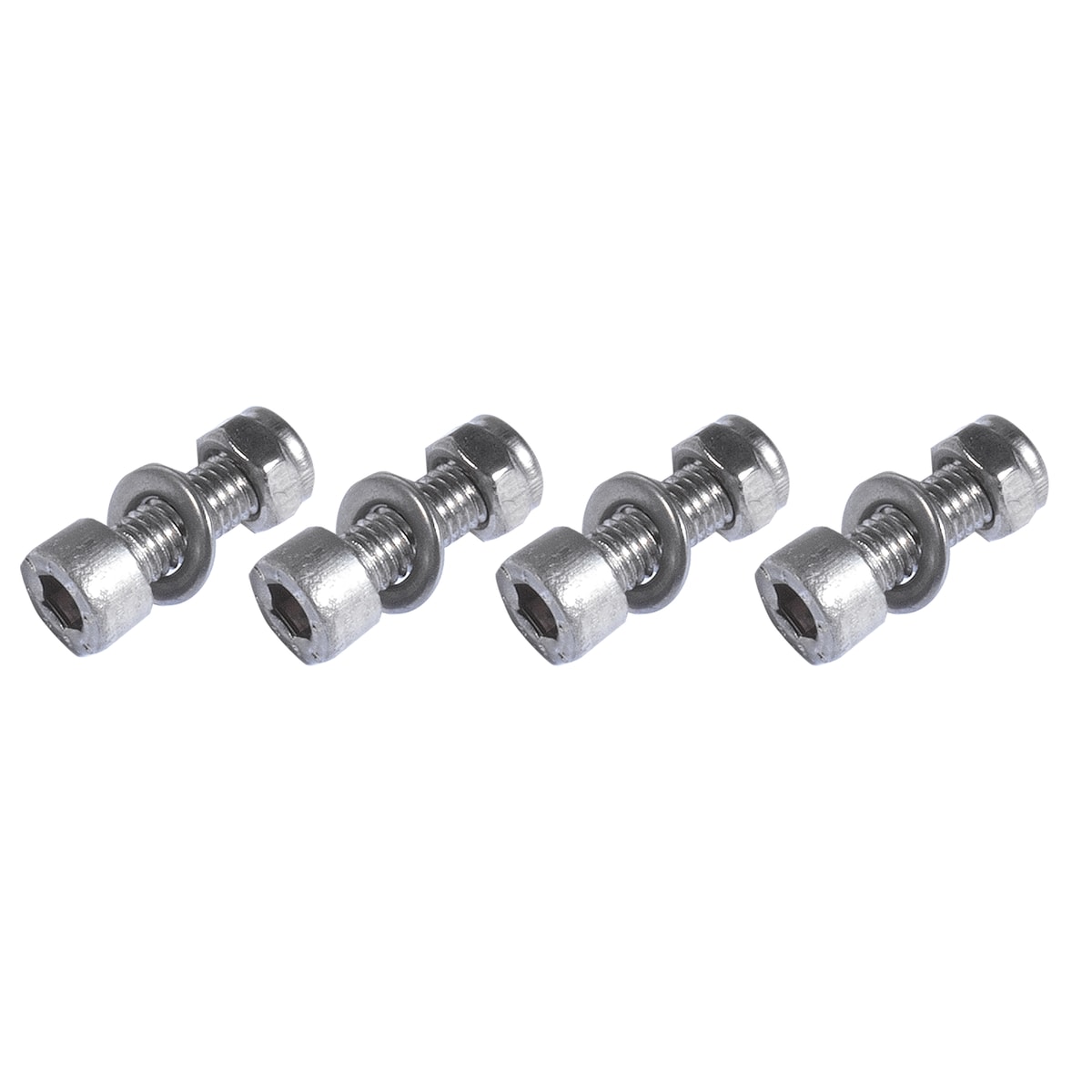Le set de montage ROSE doit fixer votre porte-bagages et est constitué de chaque de 4 vis M5, de 4 rondelles et de 4 écrous autobloquants M5. Les vis sont disponibles au choix en 14 ou 16 mm.