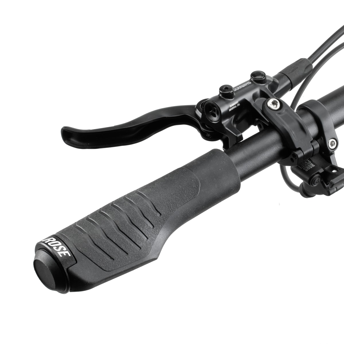 Les poignées Pro Anatomic R de ROSE ont une forme ergonomique avec un support évasé et flexible pour la paume qui répartit les pressions largement pour ainsi assurer un confort et un amortissement élevés. Le profilé fin sur la partie haute de la poignée et la structure alvéolaire sur la partie inférieure procurent à vos mains à tout moment le bon grip.