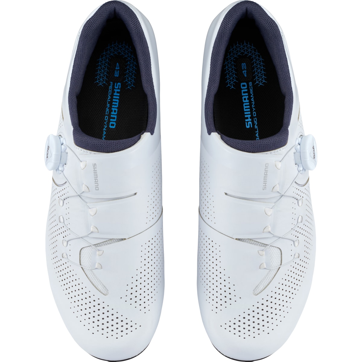 Les contours courbés anatomiquement sont parfaitement adaptés à la forme naturelle des pieds. Vu que les pieds sont placés en bas de la chaussure, ils sont au mieux rapprochés des pédales. Ces chaussures conviennent alors surtout pour les longues sorties à toute vitesse. La forme optimisée de la semelle, entre autres le surhaussement réduit des orteils, permet de profiter plus efficacement de la force musculaire. Sa structure extrêmement fine baisse considérablement le poids total et assure une rigidité élevée. La partie des cales a été agrandie pour mener à un positionnement anatomiquement et biomécaniquement correct des cales.