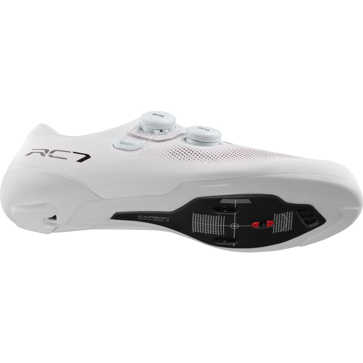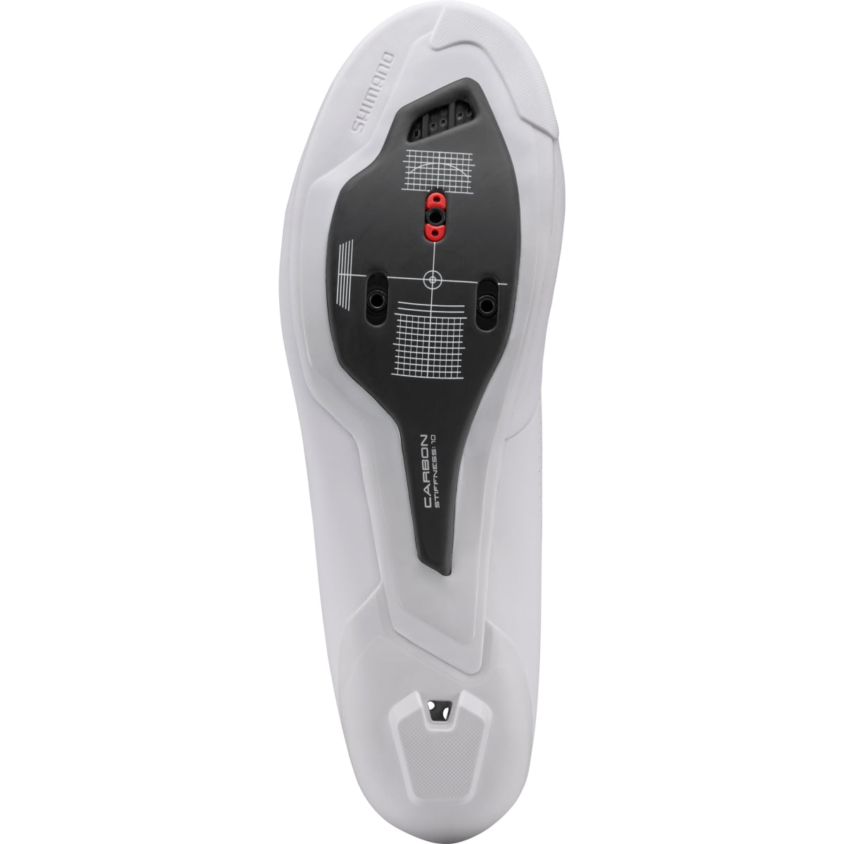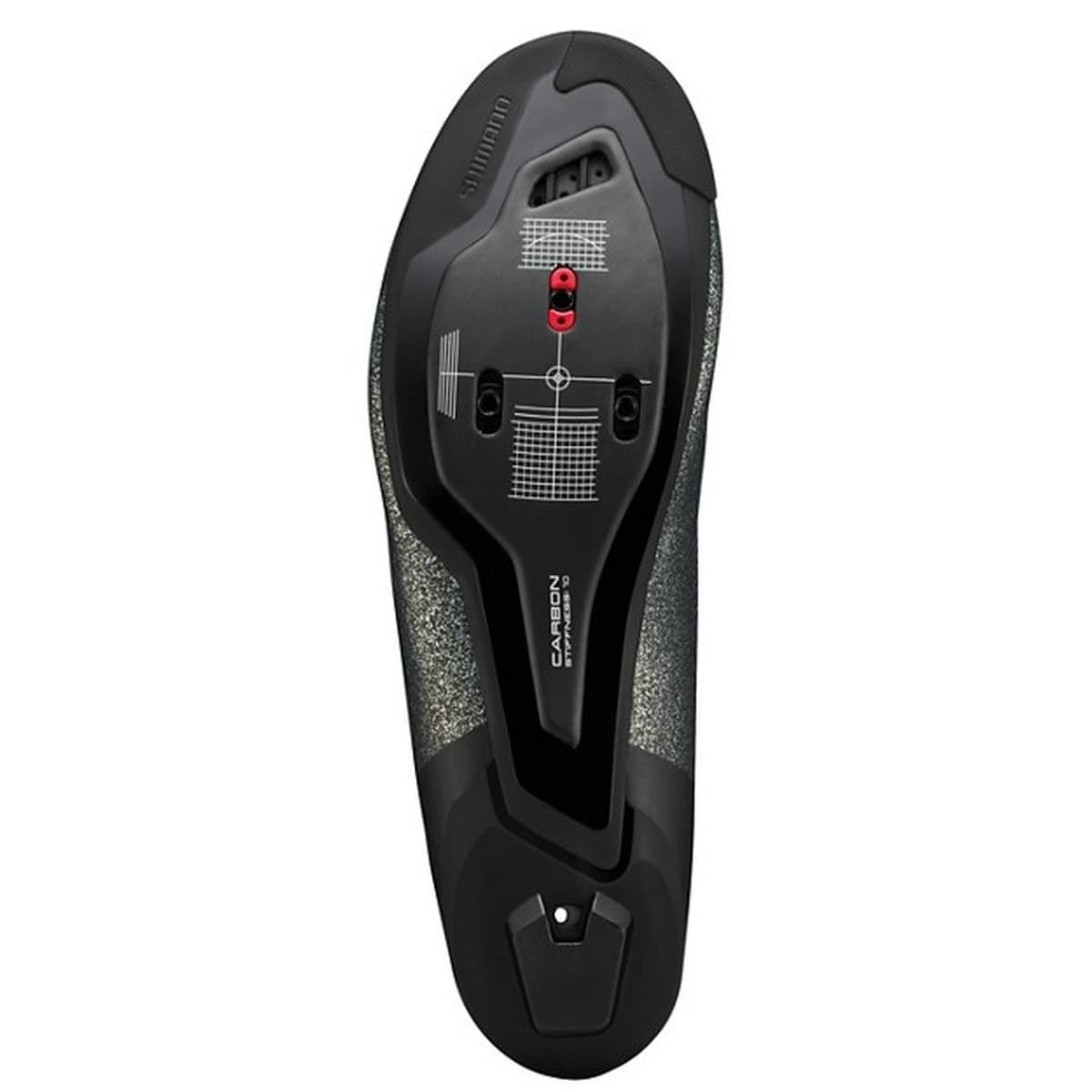 Les contours courbés anatomiquement sont parfaitement adaptés à la forme naturelle des pieds. Vu que les pieds sont placés en bas de la chaussure, ils sont au mieux rapprochés des pédales. Ces chaussures conviennent alors surtout pour les longues sorties à toute vitesse. La forme optimisée de la semelle, entre autres le surhaussement réduit des orteils, permet de profiter plus efficacement de la force musculaire. Sa structure extrêmement fine baisse considérablement le poids total et assure une rigidité élevée. La partie des cales a été agrandie pour mener à un positionnement anatomiquement et biomécaniquement correct des cales.