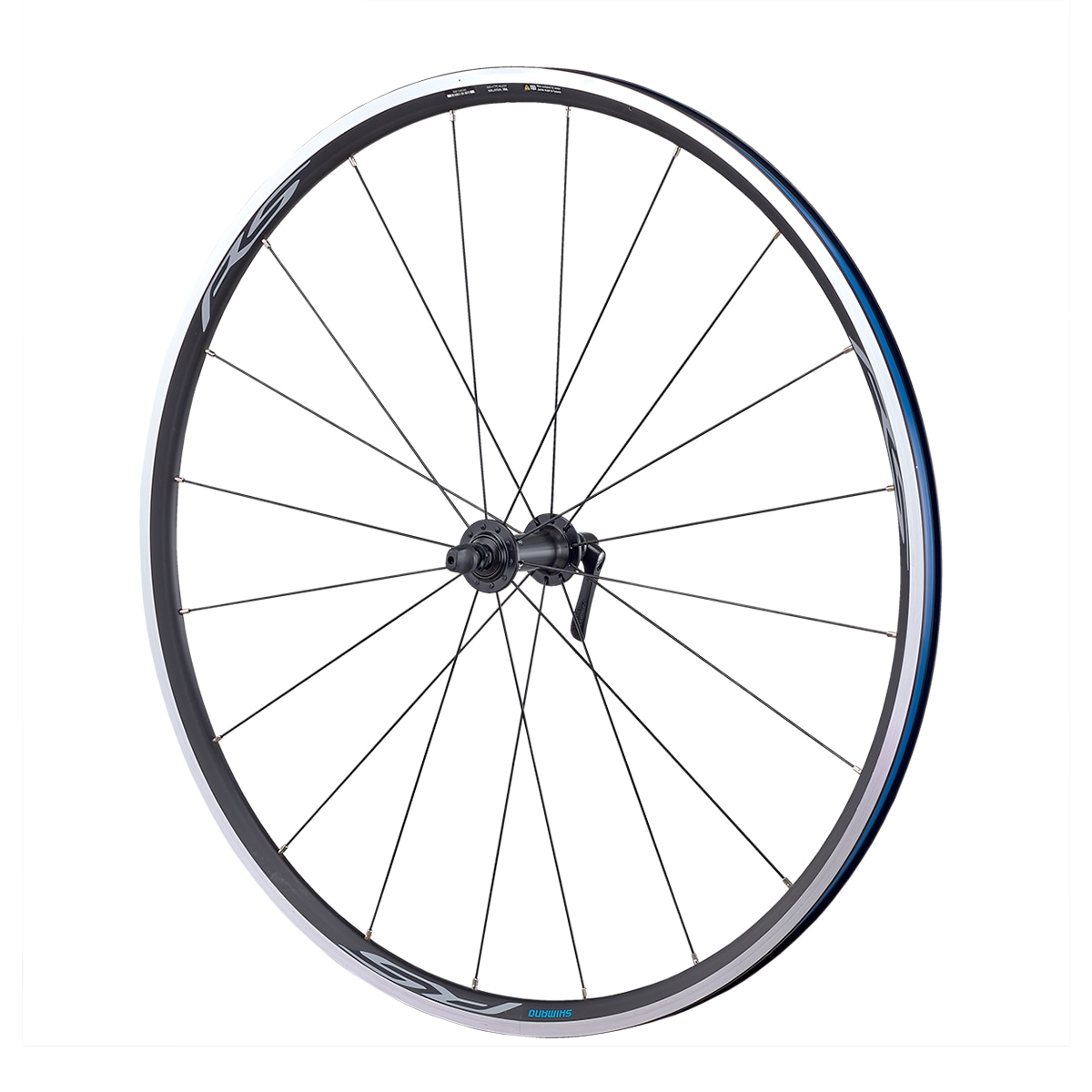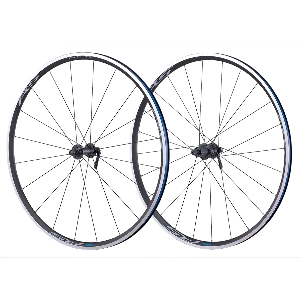 Paire de roues Shimano WH-RS100-CL pour vélos de route équipés de freins sur jante et blocages rapides.