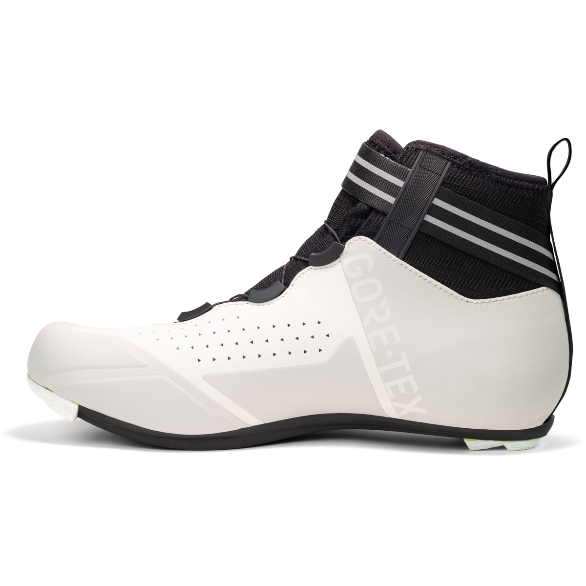 La membrane GORE-TEX EPE BASED résistante au vent et aux intempéries et la polaire chaude de ces chaussures d'hiver aident à garder vos pieds au chaud. Elles sont dotées d'orifices de ventilation aux zones stratégiques pour éviter l'accumulation potentielle de chaleur. La tige haute avec une fermeture à lanières élastiques jusqu'au-dessus des chevilles protège des intempéries. En matière de transmission de force, ces chaussures d'hiver pour le vélo de route satisfont par leur semelle R2CC rigide, en plus d’un design typé course pour un meilleur aérodynamisme dans le vent d'hiver.