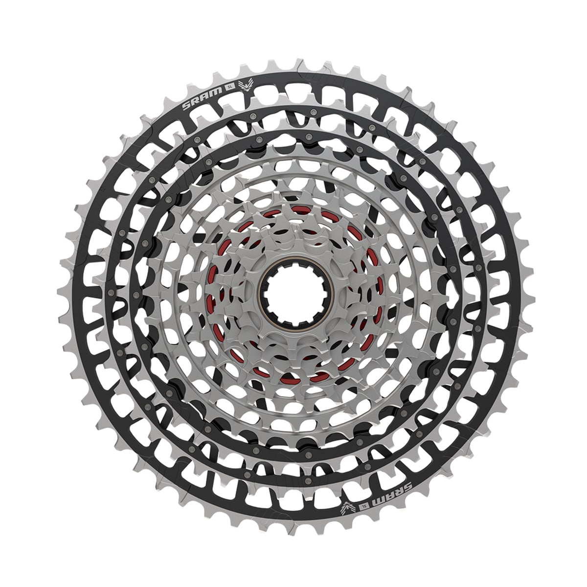 La cassette XX SL XS-1299 mise sur l’architecture X-DOME™ usinée en acier trempé plein pour les pignons de 4 à 12 vitesses pendant que ceux de 1 à 3 vitesses se fient à une étoile en aluminium léger.